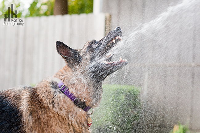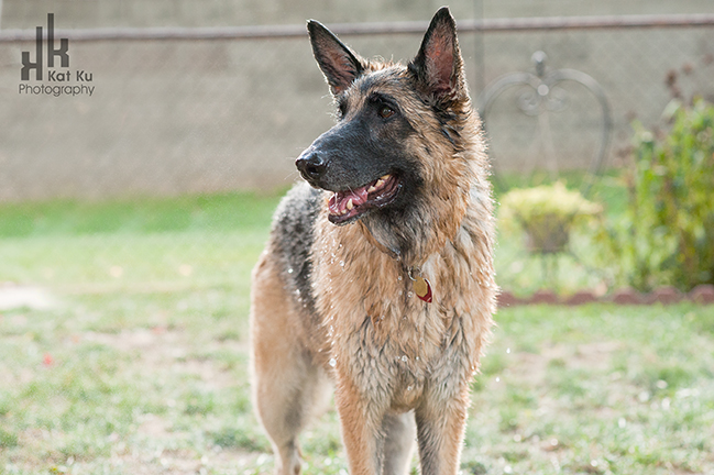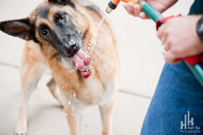 Late last month I photographed Summer, a sweet and intelligent German Shepherd, who was diagnosed with cancer. Sadly, not too shortly after we had our photo session, she crossed over the doggy rainbow. Two hours may not seem like a very long time to spend with a dog, but it was long enough for me to fall in love with her one eye that cried every time she smelled/saw a delish treat (mine must have been pretty delicious because her eye was constantly pouring, and her mom and dad had to get a towel to wipe her face. you can kind of tell in some of the following photos), and her insane love of playing with the water coming out of the garden hose.