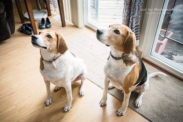 So to give you a short background on Hattie and Mac: at the time when Kelly and Bill were looking to get another dog, they had a client with an older Foxhound who was very calm and well-behaved. They thought wow, what a great personality, this will be a great breed for us. They adopted Hattie and Mac (sister and brother) from a rescued litter of puppies, and well, it turned out they didn’t quite have the same personalities as the older Foxhound–isn’t that how it usually works? haha Described as loud and obnoxious, with a love of barking at random things and chasing each other around the yard, their antics earned them their names (for the non-history buffs, the names Hatfield and McCoy originated from a family feud back in the late 1800s. You can read more about it here). When they’re not tearing up a storm, Hattie and Mac love attention and sitting on laps even though they weigh 70 pounds!
